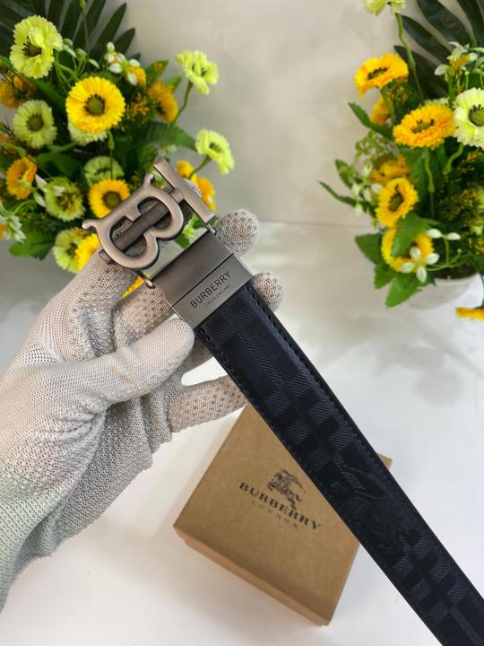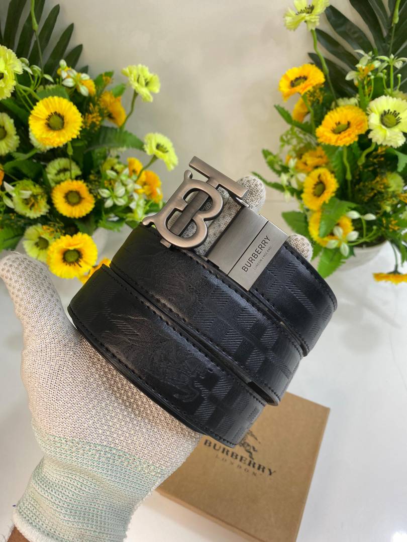 Burberr_y Luxury Leather Belt Silver TB Buckle with Box Dust Bag & Carry Bag (23-3)